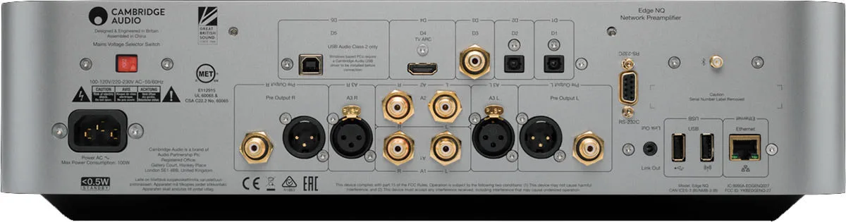 Le pré-ampli Cambridge Edge NQ met a profit sa conception audiophile pour servir au mieux les sources analogiques qui lui sont connectées. Que vous disposiez d’une platine CD, d’un lecteur de cassette audio ou de toute autre source musicale analogique, vous êtes assurés que le signal transmis sera bien traité. Vous avez le choix entre les entrées RCA asymétriques et les entrées XLR symétriques, en entrée Ligne comme en sortie pré-amplifiée vers l’amplificateur de puissance.