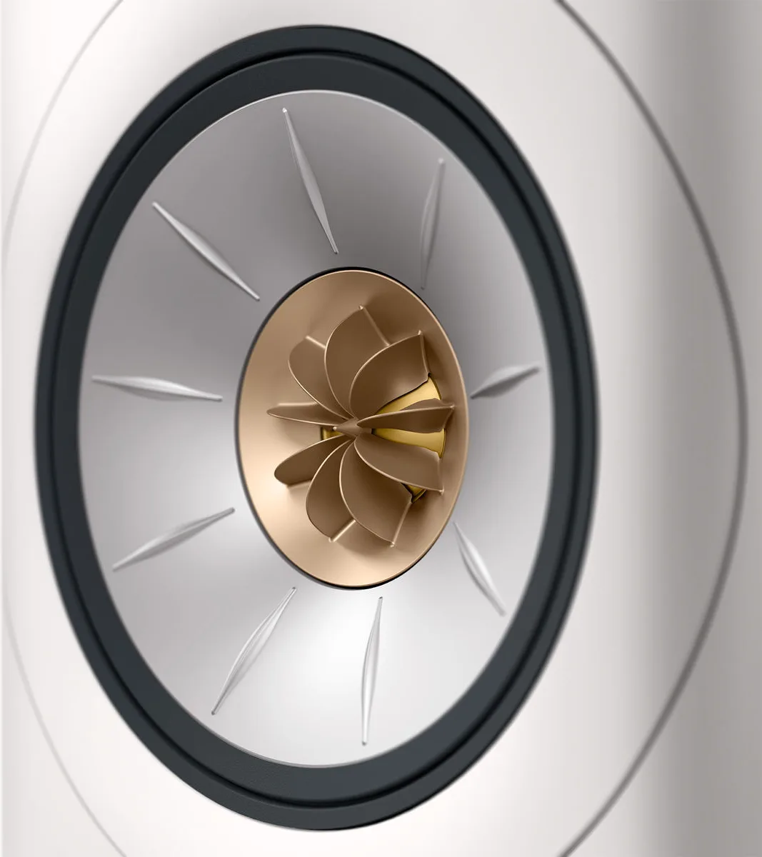 L’enceinte colonne connectée KEF LS60 Wireless adopte l’emblématique haut-parleur Uni-Q de douzième génération pour la restitution des médiums et des aigus. Celui-ci adopte une membrane en aluminium de 100 mm de diamètre pour la reproduction des médiums. En son centre prend place un tweeter à dôme en aluminium ventilé de 19 mm de diamètre. Cet haut-parleur Uni-Q bénéficie des dernières avancées de la marque comme l’amortisseur de l’entrefer du tweeter et la nouvelle suspension Z-Flex. Cette conception assure une transition plus fluide et une restitution de plus haute précision. Grâce à l’emploi d’un haut-parleur coaxial, l’enceinte KEF LS60 Wireless offre une source sonore ponctuelle qui fournit une image sonore tridimensionnelle extrêmement détaillée et précise. La diffusion sonore est uniforme dans toute la pièce, si bien qu’il n’y a pas un seul point d’écoute idéal (sweet spot) : le sweet spot vous « suit » où que vous soyez dans la pièce.