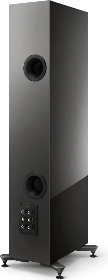 Pour offrir des basses encore plus profonde, l’enceinte KEF R7 Meta est chargée en bass-reflex par deux évents disposés à l’arrière. Ces derniers sont dotés de parois flexibles innovantes développées après de longues études de la dynamique des fluides. L’évasement et le profil de ces évents sont ainsi calculés pour supprimer les turbulences, même à fort volume d’écoute. De plus, les parois flexibles empêchent les résonances longitudinales de colorer le bas médium. Les avantages de cette approche sont doubles : un grave rapide et profond et plus texturé, mais également une plus grande transparence dans le bas médium.