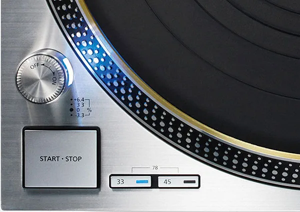 La platine vinyle Technics SL-1200G est en mesure de lire des disques vinyle 33, 45 et 78 tours/minutes. La sélection de la vitesse se fait à l’aide des touches dédiées présentes à côté de l’interrupteur de mise en marche de la platine. Il est également possible d’ajuster précisément la vitesse de lecture d’un potentiomètre dédié et une touche reset permet de réinitialiser rapidement la vitesse de lecture.