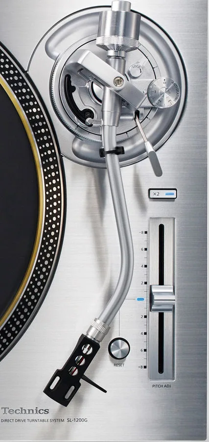 La platine vinyle Technics SL-1200G est dotée d’un bras en magnésium ultra léger et étiré à froid. Le choix de ce matériau offre un excellent amortissement au bras de lecture. D’une longueur de 230 mm ce bras adopte une forme en S ce qui lui permet un alignement optimal avec le sillon des disques vinyle. Ce bras adopte une suspension à cardan utilisée sur les autres platines de la marque. Ce mode de fixation est caractérisé par l’intersection de l’axe de rotation horizontal et l’axe de rotation vertical en un seul point central, ainsi que par des roulements d’une haute précision grâce à un logement découpé.