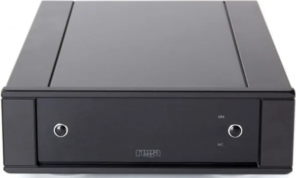 L’entrée dédiée aux cellules à bobine mobile (MC) utilise des FET (transistors à effet de champ) connectés en parallèle et configurés en paires compound. Ces transistors FET éliminent le passage de courant vers la bobine de la cellule, préservant ainsi l’équilibre magnétique délicat de celle-ci. L’entrée MC peut être paramétrée pour une impédance d’entrée de 70 à 400 ohms et pour une capacitance de 1000 à 4200 pF. La sensibilité d’entrée peut être altérée de 6 dB à l’aide des micro-commutateurs implantés sur le panneau arrière. L’entrée dédiée aux cellules à aimant mobile (MM) utilise pour sa part des transistors bipolaires, également configurés en paires compound.