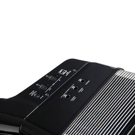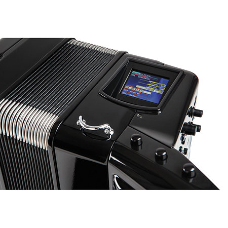Présentant de nombreuses améliorations et nouveautés suggérées par des pros Nouvelle technologie «Dynamic Bellows Behavior» Chargement de la batterie dans l’instrument même, brancher au secteur avec un adaptateur Clavier boutons entièrement revu, offrant une meilleure reponse, un aspect authentique et un maniement plus silencieux Large ventail de sons d’accordons du monde entier plus 180 sons d’orchestre, de percussion et d’orgues ‘Virtual Tone Wheel’ d’excellente qualité 4 Processeurs multi-effets (MFX) pour les sections d’accordéon, Orchestra 1, Orchestra 2 et d’accords orchestraux. Interface utilisateur entièrement revue avec grand cran couleur, un agencement intuitif des commandes et trois mentonniers assignables pouvant piloter diverses fonctions 1400 Mmoires de programmes utilisateur permettant de sauvegarder des ensembles de réglages Fonction ‘Looper’ permettant de crer des accompagnements la vole. Enregistrement et reproduction audio sur cl USB Prise USB Host pour une connexion un ordinateur Disponible en finition rouge ou noire Livrer avec sa housse