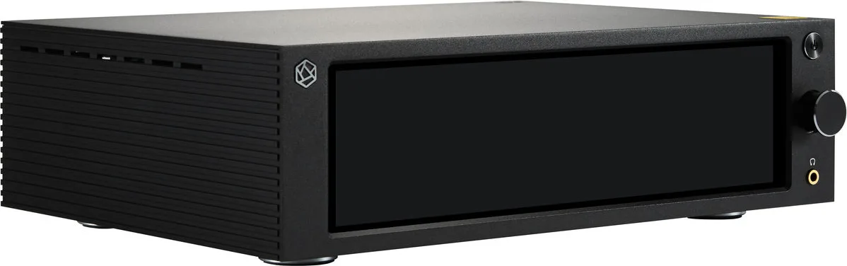 En sortie, il est possible de l’associer à un téléviseur 4K ou un vidéoprojecteur 4K via sa sortie HDMI mais aussi à un DAC externe via ses sorties numériques (USB-A, optique et coaxiale). Enfin, sa sortie stéréo RCA permet d’y relier un ampli de puissance ou une paire d’enceintes amplifiée, le contrôle du volume s’effectuant directement depuis sa commande de volume.