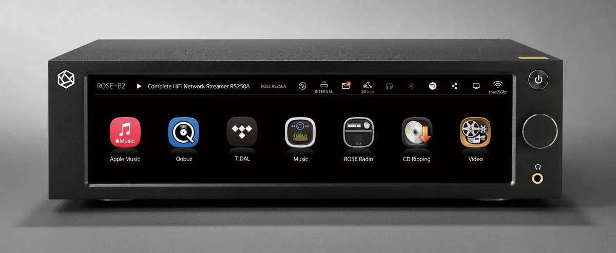 Le lecteur réseau audio et DAC Rose RS250A est un modèle audiophile certifié Hi-Res Audio équipé d’un DAC ESS hautes performances et d’un grand écran tactile. Ce lecteur réseau Rose RS250A succède au populaire Rose RS250 auquel il apporte des composants encore plus performants pour maximiser la transparence et la musicalité. Extrêmement polyvalent, le lecteur Rose RS250A peut accéder à la majorité des services de streaming, des webradios et recevoir de la musique en Bluetooth, DLNA ou AirPlay. Sa connectique avec sortie HDMI compatible 4K 60Hz, entrée USB-B et entrées analogiques et numériques permet d’y associer facilement toutes vos sources.