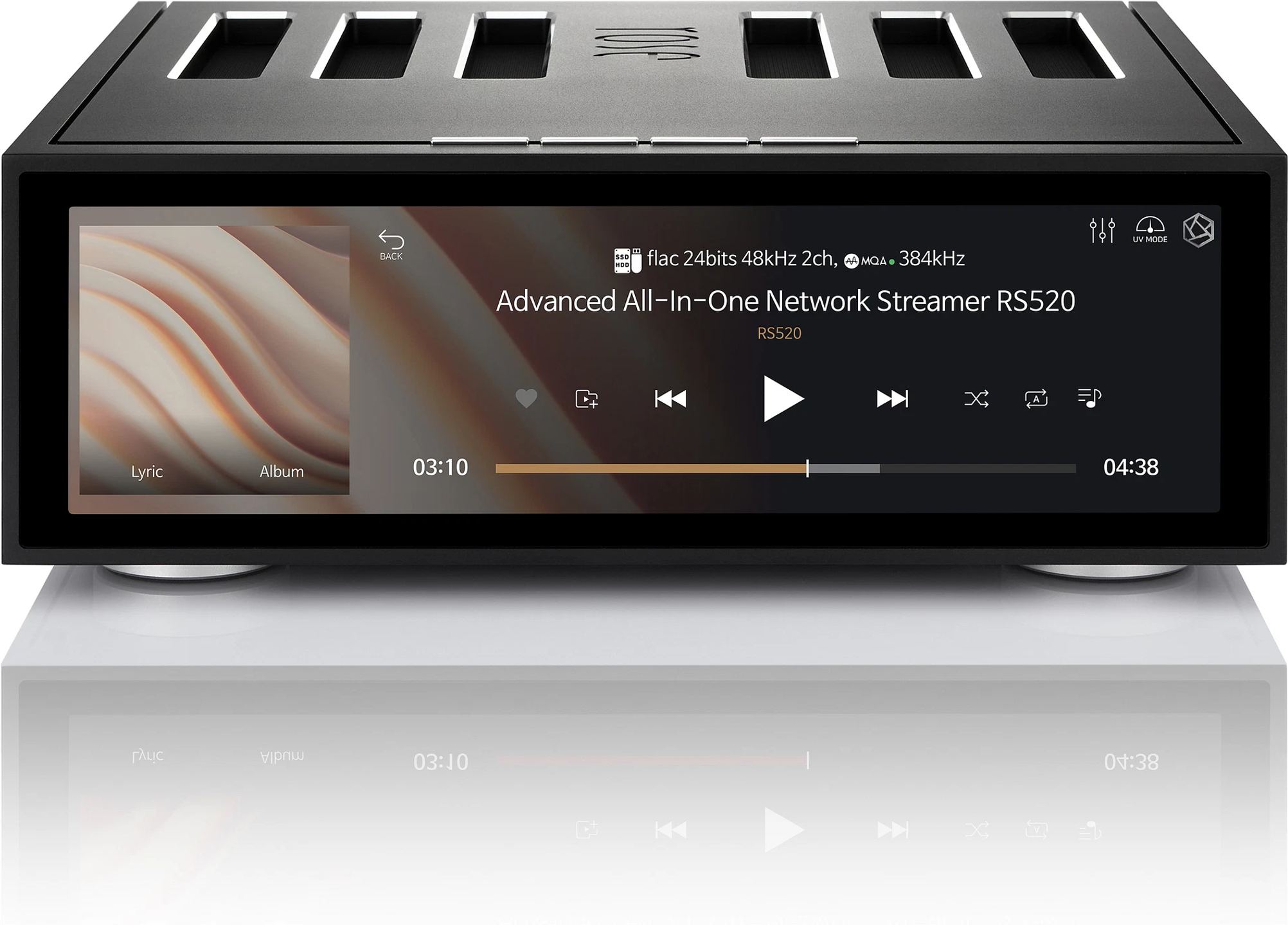 Le RS520 est un produit tout-en-un avec un lecteur réseau, un DAC et un amplificateur intégré. Le module DAC et l’amplificateur sont équipés d’un DAC ES9038PRO, la puce DAC phare de la technologie ESS, et d’un module amplificateur de classe AD développé à partir de nouveaux matériaux GaN FET. Le RS520 est un streamer réseau avancé tout-en-un qui regroupe les principales fonctions des streamers tout-en-un existants en un seul, basé sur le savoir-faire et les fonctions de conception uniques de ROSE accumulés au fil des ans.
